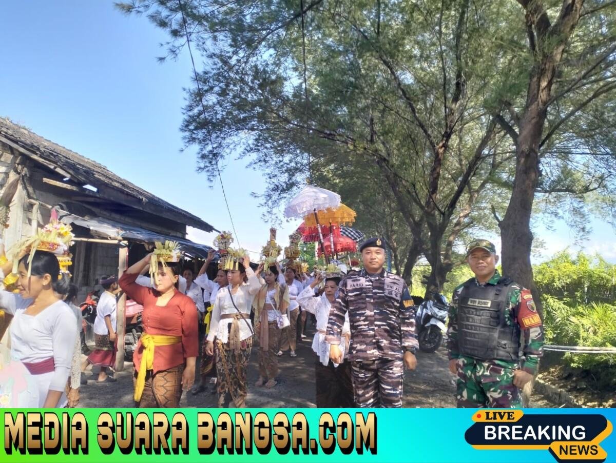 Mediasuarabangsa.com //Blimbingsari – Personel Koramil Rogojampi Babinsa Desa Watukebo, Sertu Widi Hidayat, bersama jajaran Bhabinkamtibmas dan Babinpotmar melaksanakan pengamanan serta pendampingan dalam kegiatan ibadah Melasti yang digelar oleh umat Hindu Dusun Amerthasari, Desa Watukebo, Kecamatan Blimbingsari, Selasa (17/03/2026).