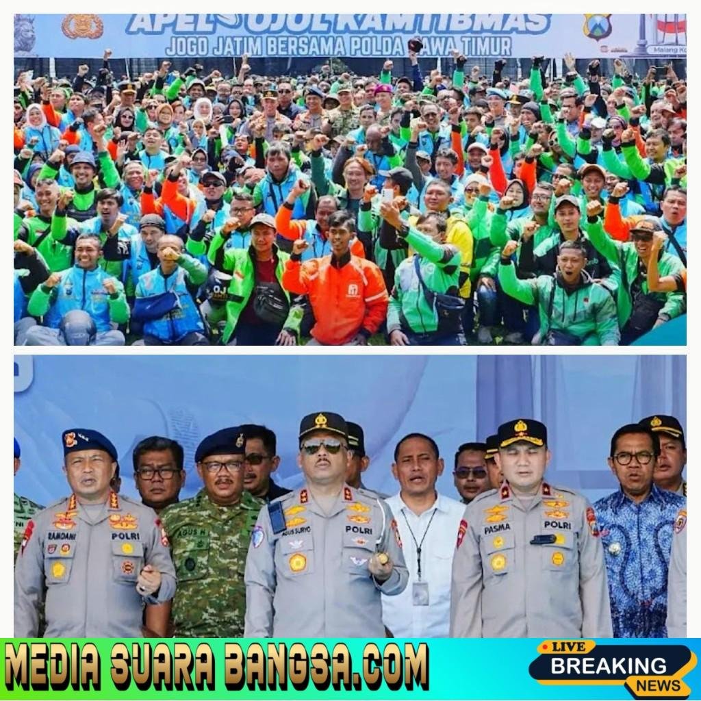 Adapun peserta apel terdiri dari 180 personel Bhabinkamtibmas, 150 anggota Satsamapta, serta 4.425 driver ojol dari berbagai wilayah di Jawa Timur.