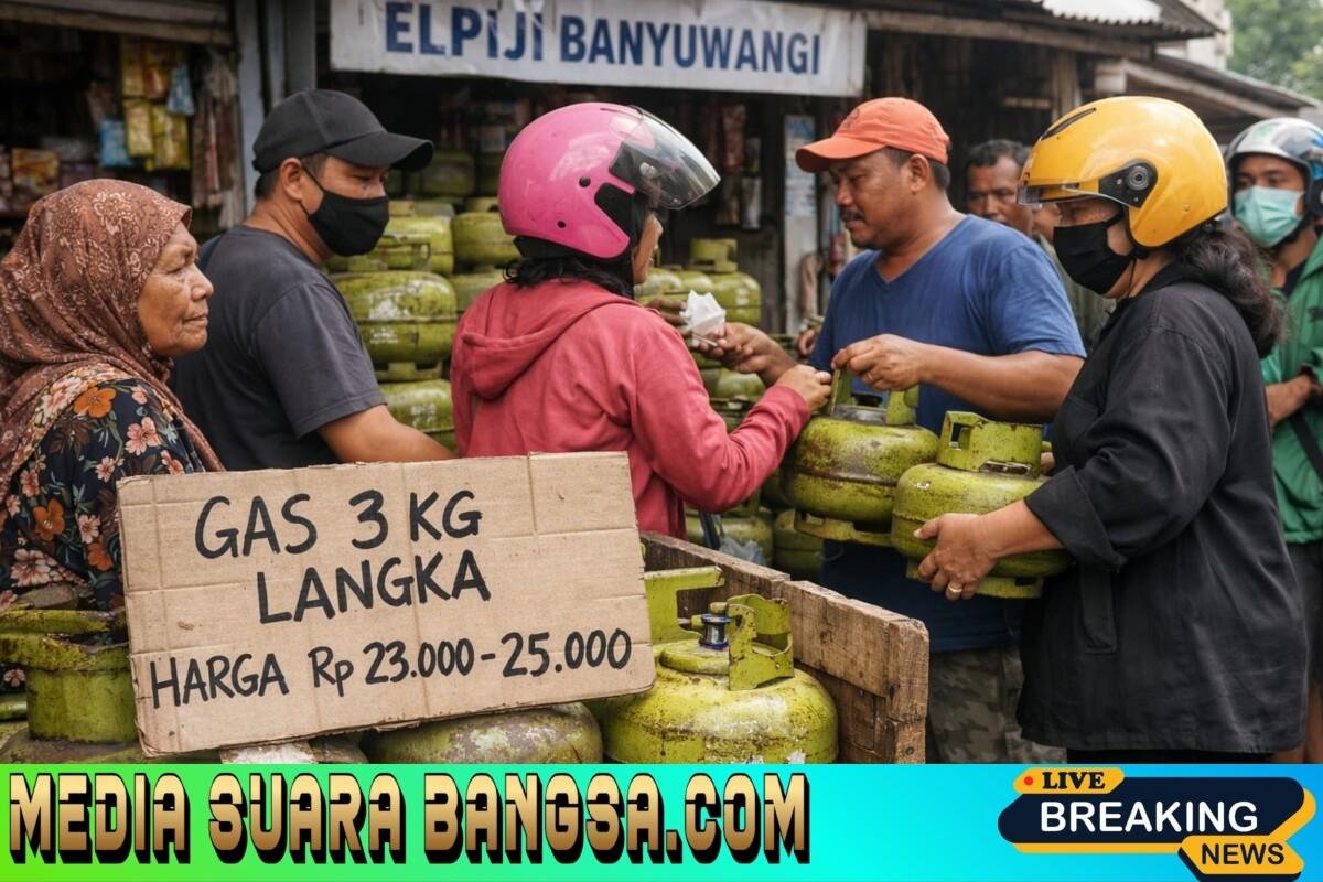 Mediasuarabangsa.com //Banyuwangi – Fenomena kelangkaan gas elpiji subsidi 3 kilogram atau yang kerap disebut “gas melon” kini menjadi persoalan serius di hampir seluruh wilayah Kabupaten Banyuwangi. Kondisi ini menuai keluhan luas dari masyarakat, terutama karena terjadi menjelang Hari Raya Idul Fitri, saat kebutuhan rumah tangga meningkat tajam.