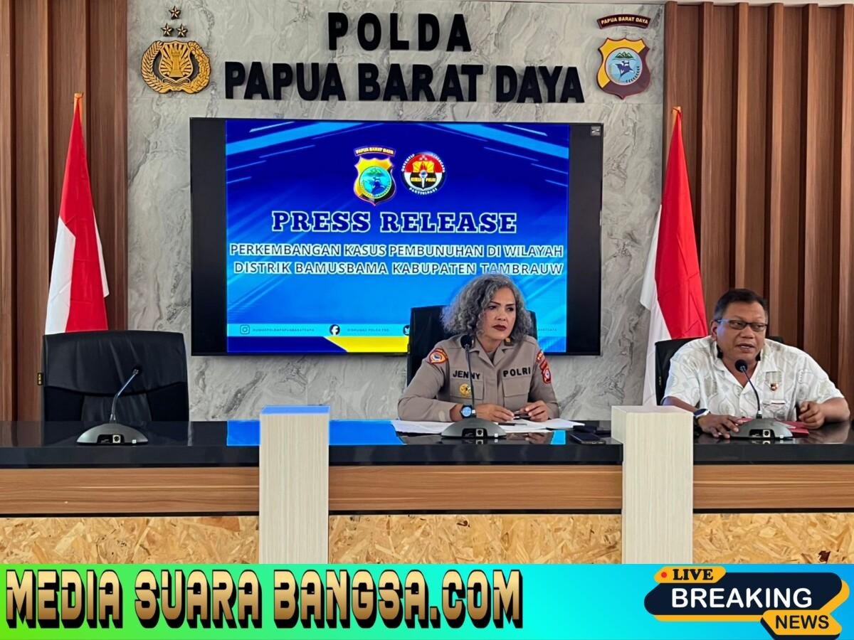 Media suara bangsa. Com //Sorong PBD — Kepolisian Daerah Papua Barat Daya mengungkap perkembangan terbaru kasus pembunuhan terhadap warga sipil yang terjadi di Distrik Bamusbama, Kabupaten Tambrauw, dalam dua peristiwa berbeda pada 8 dan 16 Maret 2026. Dalam keterangan resmi yang disampaikan di Markas Komando Polda Papua Barat Daya, Rabu (25/3/2026), proses penyelidikan terus berjalan dan mulai mengerucut pada sejumlah pihak yang diduga terlibat.