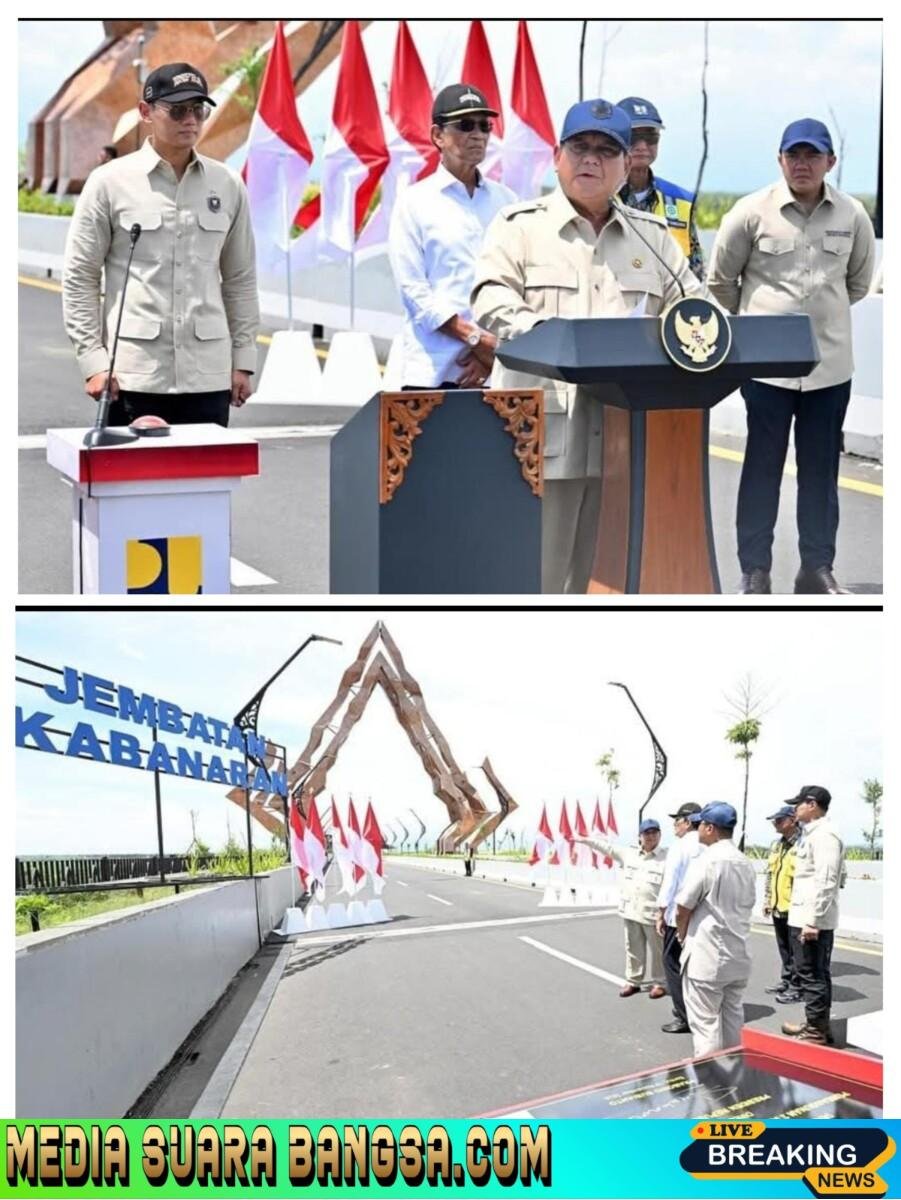 Mediasuarabangsa.com //Presiden Prabowo Subianto meresmikan Jembatan Kabanaran di Kabupaten Bantul, Daerah Istimewa Yogyakarta, Rabu (19/11/2025). Dalam kesempatan tersebut, Kepala Negara turut meresmikan empat proyek infrastruktur lain secara hybrid, yaitu Underpass Gatot Subroto di Provinsi Sumatera Utara, Jembatan Sungai Sambas Besar di Provinsi Kalimantan Barat, serta Underpass Joglo Surakarta dan Flyover Cangguk di Provinsi Jawa Tengah.