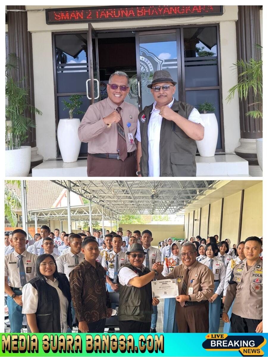 Mediasuarabangsa.com //BANYUWANGI – Komitmen memerangi peredaran narkoba di kalangan pelajar kembali ditegaskan melalui sinergi Rumah Kebangsaan Basecamp Karangrejo (RKBK), Yayasan Anti Narkoba Lapor Pulih Sehat Sejahtera (LPSS), dan BNNK Banyuwangi. Kegiatan yang berlangsung Selasa siang, 18 November 2025, menghadirkan materi lengkap mulai dari hukum, bahaya narkoba, hingga mekanisme pelaporan dan rehabilitasi bagi penyalahguna. Kepala Sekolah, dewan guru, serta ratusan siswa-siswi SMAN 2 Taruna Bhayangkara Genteng mengikuti agenda ini dengan penuh antusias.