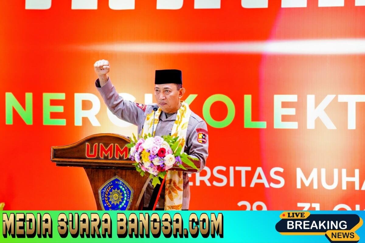 Mediasuarabangsa.com //Jatim – Kapolri Jenderal Listyo Sigit Prabowo memberikan sambutan sekaligus menutup acara Tanwir ke-XXXIII IMM di UMM Dome, Malang, Jawa Timur (Jatim), Jumat, 31 Oktober 2025. Dalam kesempatan ini, Sigit mengajak seluruh peserta untuk berkontribusi dalam rangka mendukung program Pemerintah Indonesia.